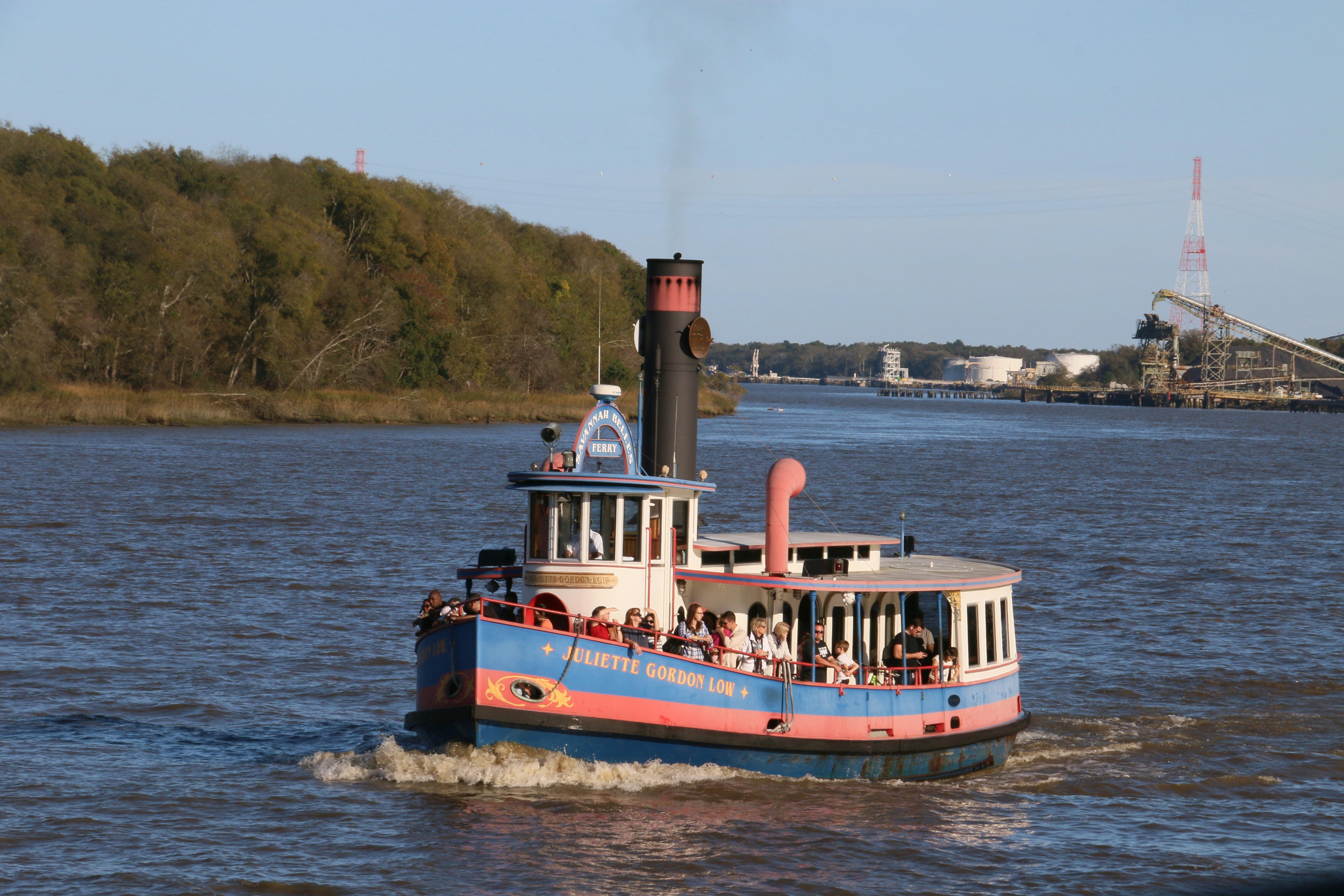 A colorful tourist riverboat with passengers cruising down a wide Alaskan river, representing the popular cultural and historical experience of the Riverboat Discovery Sternwheeler tour in Fairbanks. Hop aboard the legendary sternwheeler for a cultural and historical journey on the Chena and Tanana Rivers. The guided cruise is a deep dive into local history: