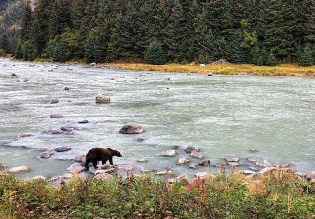A brown bear walking across rocks in the Chilkoot River The Chilkoot River, just 10 miles southeast of Haines, is one of the best places to see both brown and black bears during salmon spawning season. Unlike more famous bear viewing spots in Alaska, this river offers a quieter, more personal experience.