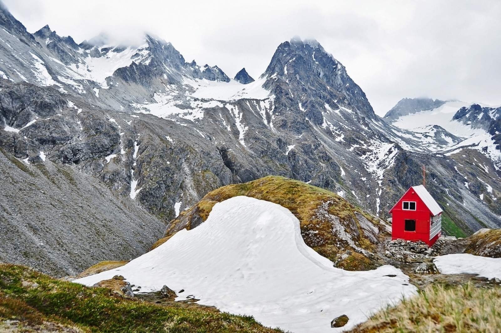 Bright red cabin perched on a rocky ridge with snow patches, set against towering alpine peaks For a shorter but rewarding hike, the Gold Mint Trail is a great choice just outside Wasilla. The trail offers wide views of the lower Matanuska Valley and winds through peaceful, wooded areas. I found it perfect for stretching my legs and enjoying the wilderness without committing to a full-day trek. Parts of the trail can be muddy, so waterproof shoes are a good idea.