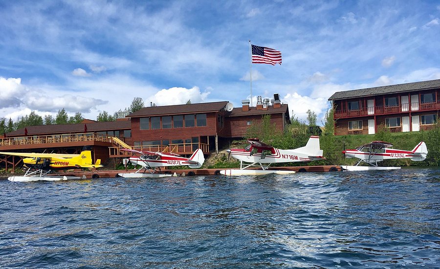 Four seaplanes moored at a lakeside lodge with an American flag flying above I wanted a memorable dinner and found two great choices in Wasilla. At The Chop House on Lake Lucille I ordered American dishes made with fresh Alaskan seafood while watching the view of the lake. At Everett’s, which is part of the Mat-Su Resort on Wasilla Lake, I enjoyed fine dining in an elegant setting with mountains in the background.