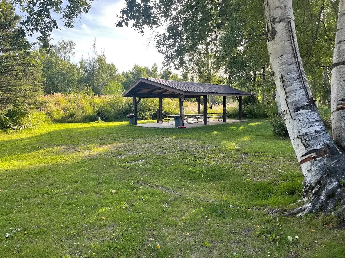 Wooden picnic shelter with benches set at the Lake Lucille Park surrounded by trees and birch trunks I wanted a calm break, so I walked around Lake Lucille Park which is not far from the Iditarod Headquarters. The trails gave me time to enjoy the scenery at a slow pace, and the boardwalk and fishing deck made the lake easy to explore.