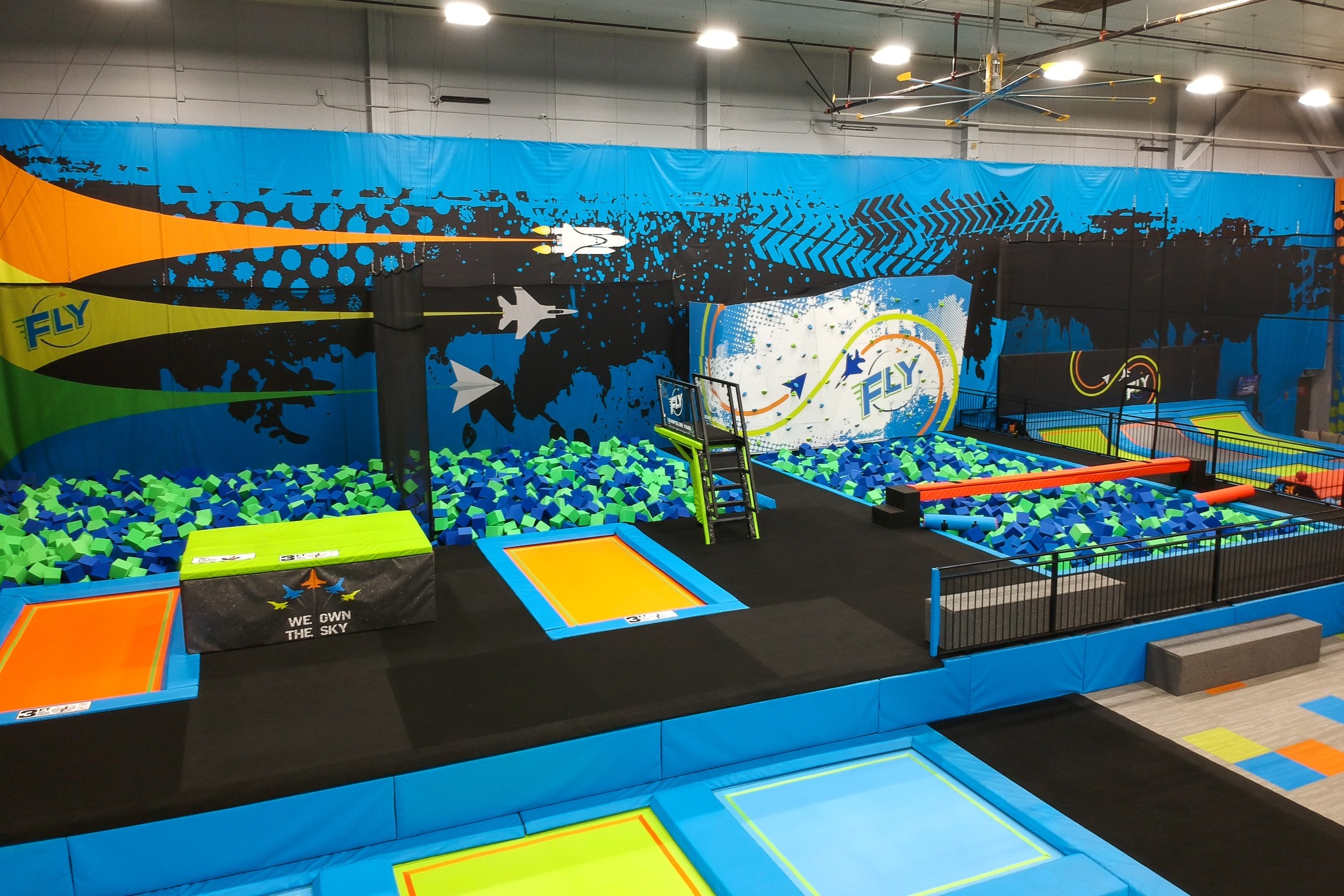 The Fun Center and Fly Trampoline Park featuring foam pits, jump zones, and a vibrant space-themed wall mural The weather in Alaska changed quickly, and when the rain started I went to the Extreme Fun Center and the Fly Trampoline Park. Inside the Extreme Fun Center I found cart racing, a huge laser tag arena, and even a cafe where parents could relax while the kids played.